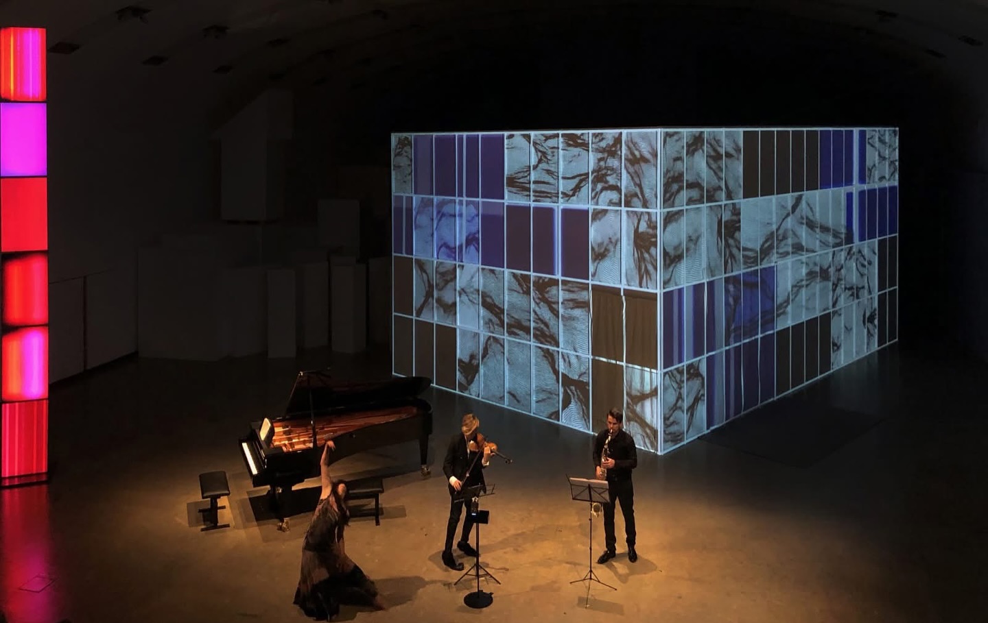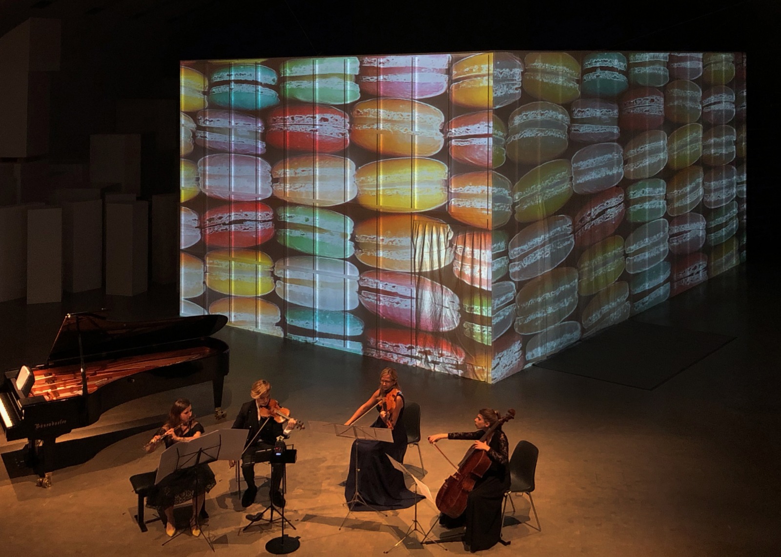 Wir präsentieren vielseitige künstlerische Konzepte, um zu versuchen, diese verschiedenen Formen der Kunst zu vereinen. Die immersive Performance schafft einen Dialog aus Musik, bildender Kunst, Theater, Tanz und Mode.